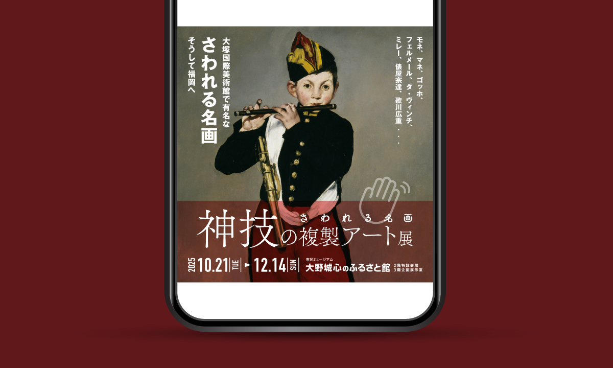 大野城心のふるさと館にて開催された、令和7年度秋季特別展「神技の複製アート展 ―さわれる名画―」において、来場促進および認知拡大を目的とした広報活動を総合的に実施いたしました。